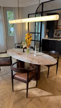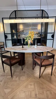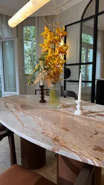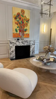 STONE VALLEY : Aménagement d’exception pour un appartement parisien Plongez dans l’univers de STONE VALLEY, Maison française de Mobilier d’Art haut de gamme, à travers un projet d’aménagement unique pour un appartement parisien niché au cœur de la capitale. Pour ce projet, nous avons privilégié une ambiance chaleureuse aux tonalités automnales, en harmonie avec les éléments de décoration déjà présents et l’histoire riche de ces appartements parisiens. Une touche de modernité, portée par des formes épurées et contemporaines, se mêle à l’intemporalité des pierres naturelles que nous avons privilégié comme le Quartzite, le Marbre ou encore le Travertin, soigneusement sélectionnées parmi notre catalogue exclusif de plus de 70 variétés. Chaque pièce, est issue de notre gamme « Votre projet Signature », qui incarne l’excellence de notre savoir-faire artisanal, hérité de nos ateliers en Italie.