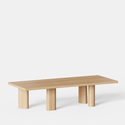 The rectangular coffee table from the Galta collection plays on the principle of accentuating formats. The proportions of the base are generous by enlarging the teardrop shape typical of the Galta collection. Still in the idea of accentuation, the arrangement of the four legs takes advantage of the decentering.
