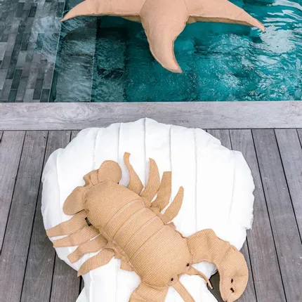 Handmade in France, in St Tropez with recycled or recyclable materials. Available in two colors: cream white or turquoise. Its summer shape will plunge you into our marine universe. MX Home ottomans will bring a real touch to your decoration. Ultra resistant color, unsinkable, resistant to salt, chlorine, UV, mold, rubbing, anti-stain, hypoallergenic, without toxic products for the body and the environment. Also available in a size S” cushion