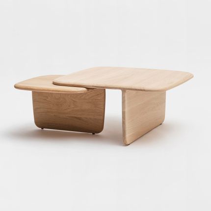 Thanks to its soft and rounded shapes, its adjustable top, the generous thickness of solid oak and its clever base, the TOI ET MOI coffee table differs from a simple coffee table. DIMENSIONS Large tray: L. 80CM X D. 80CM X Depth 2.8CM - Small tray: W. 56CM X D. 56CM X Depth 2.8CM - Overall adjustable dimensions: H. 38CM X D. 90CM - Adjust your length: L.93 - 103 - 113CM - Weight: 26kg. MATERIAL 100% solid oak from sustainably managed French forests - FINISH Matt varnish. DELIVERY Delivered assembled. Coffee table made in France, Anjou