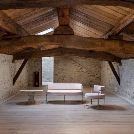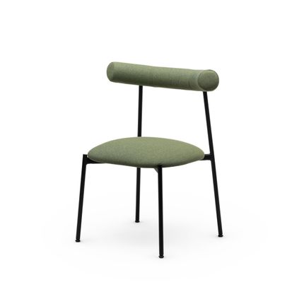 Cheerfully extravagant in its proportions, Pampa is a collection of chairs and stools with an unusual and delicate charm. Welcoming in the oversized design of the upholstered backrest, combined with a metal frame and a soft seat. Linearity and iconography come together in a game of proportions, the filiform harmony of the structure is unbalanced by a rounded and generous back that becomes the distinctive element of the collection.