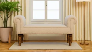 Artisan Furniture Banc Bouclé Crème, Rembourré, Tissu Bouclé, Crème