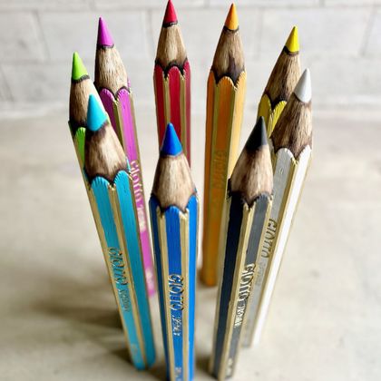 Avec la série SuperMina, Valeria Vaccaro révèle une maîtrise technique exceptionnelle. Chaque sculpture, entièrement réalisée à la main, est une pièce de design à grande échelle : des crayons géants et vivement colorés qui surprennent par leurs dimensions et la précision des détails. Grâce à la peinture, Vaccaro transforme le marbre en bois, créant illusions et émerveillement pour le spectateur. Chaque œuvre allie artisanat, créativité et fort impact visuel, transformant le marbre en une expérience sensorielle unique.