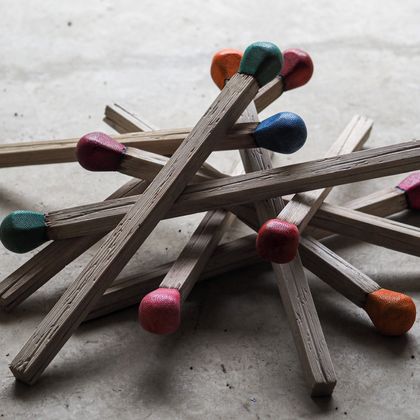 Avec la série Marmiferi, Valeria Vaccaro fait preuve d’une maîtrise technique exceptionnelle. Chaque pièce, entièrement réalisée à la main, est une œuvre de design à grande échelle : des allumettes géantes qui surprennent par leurs dimensions et leurs détails. Grâce à la peinture, Vaccaro transforme le marbre en bois, jouant avec la perception du spectateur et créant un sentiment d’émerveillement. Chaque sculpture allie savoir-faire artisanal, inventivité et impact visuel, transformant le marbre en expérience sensorielle unique.