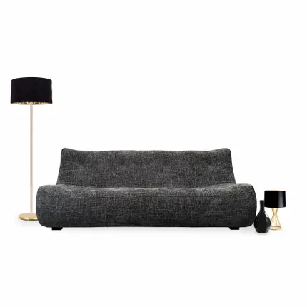 Accueillant & Rétro Structure : Mousse HR 35 kg/m3, mousse polyéther 17 kg/m3 + HR 26 kg/m3, posé sur un panneau de bois. Pieds : Bois. Finition : Tapissier. Existe en versions : - Fauteuil : 97 cm - Canapé 3 places : 200 cm