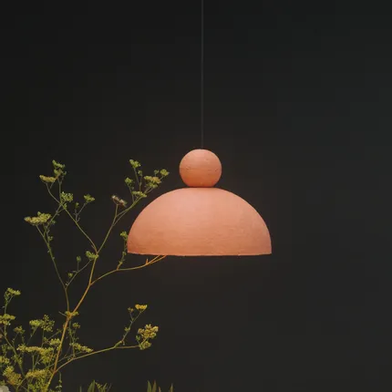 Collybie est une collection de suspensions aux formes douces et modulables. La coupole de 40 au 20cm est surmontée d'une sphère de 12cm, et peut se décliner en multipliant les perles, en jouant sur les couleurs.... Conçues en mycélium une matière douce, légère et au rendu naturel et brut : un procédé low-tech et innovant, inspiré de la nature. Les versions colorées sont peintes avec des peintures naturelles à l'ocre. Couleurs disponibles : ivoire, ocre rouge, corail, rose, jaune pale, kaki clair, kaki foncé - brut blanc/brun