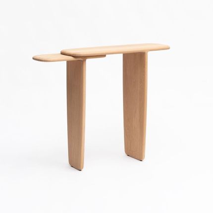 Complémentaire de la table basse TOI ET MOI, la console possède les mêmes atouts : lignes arrondies, formes organiques. Elle révèle la douceur naturelle du chêne massif. Il devient un matériau sensuel que l’on a envie de toucher. Facile à placer car peu encombrante, la console TOI ET MOI est composée de 2 plateaux qui lui donnent son caractère original. DIMENSIONS H. 87,5CM X L. 112CM X P. 30CM, POIDS 15kg - MATÉRIAU Chêne 100% massif issu de forêts françaises gérées durablement - FINITION Vernis mat - LIVRAISON Livrée montée. Console fabriquée en Anjou, France