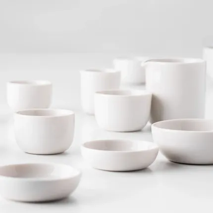 KAYA H TINY - notre petit salut de la cuisine fait toujours une grande impression. Cet ensemble exquis se compose de deux pichets différents et de quatre petits bols uniques qui peuvent être combinés individuellement. La série fabriquée à la main est disponible en blanc brillant et en noir mat. Ces pièces séduisent non seulement par leurs couleurs douces et nobles ainsi que par leur forme attrayante, mais aussi par leur robustesse, qui répond aux exigences les plus strictes du secteur de l'hôtellerie et de la restauration.