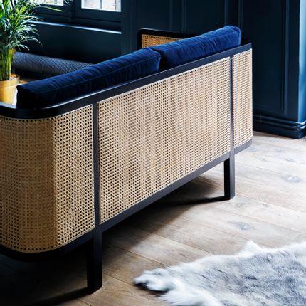 Canapé de cannage, le canapé Red Edition impose son élégance avec raffinement et modernité. Son assise vouvoie le cannage en douceur, les proportions d’or définissent son allure et chaque détail souligne le savoir-faire des artisans italiens.